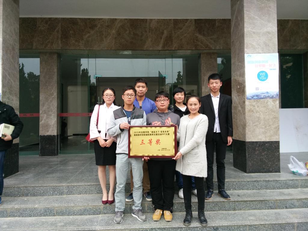 2015年10月13日由MG冰球突破官网网站资助管理中心主办,大学生素质拓展中心承办的以主题为“诚赢天下,信筑未来”2015年国家助学贷款诚信教育主题活动PPT大赛在第一教学楼A02教室举行,我院获得了大赛的三等奖,每个人都倍感荣誉。